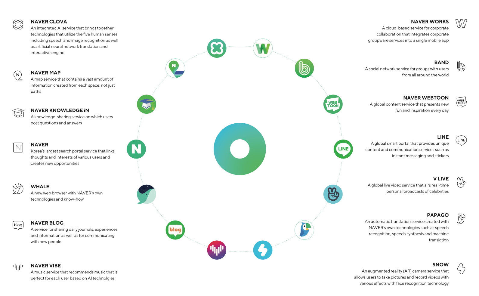 与全球其他科技巨头类似,Naver通过核心平台(搜索引擎)获取用户,然后不断扩展服务,形成一个用户难以离开的生态系统。