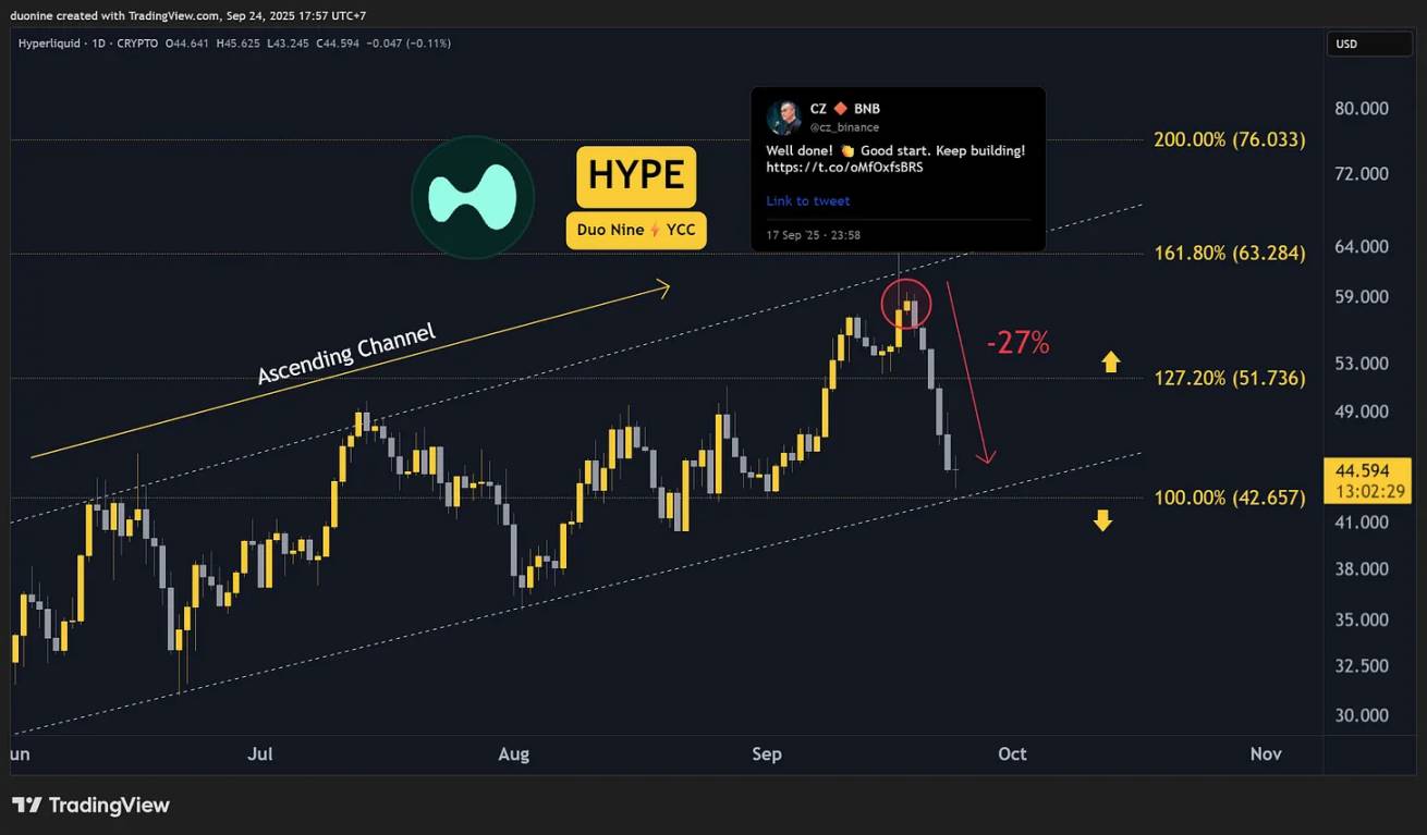 结果如何?HYPE 代币在五天内下跌了 27%。