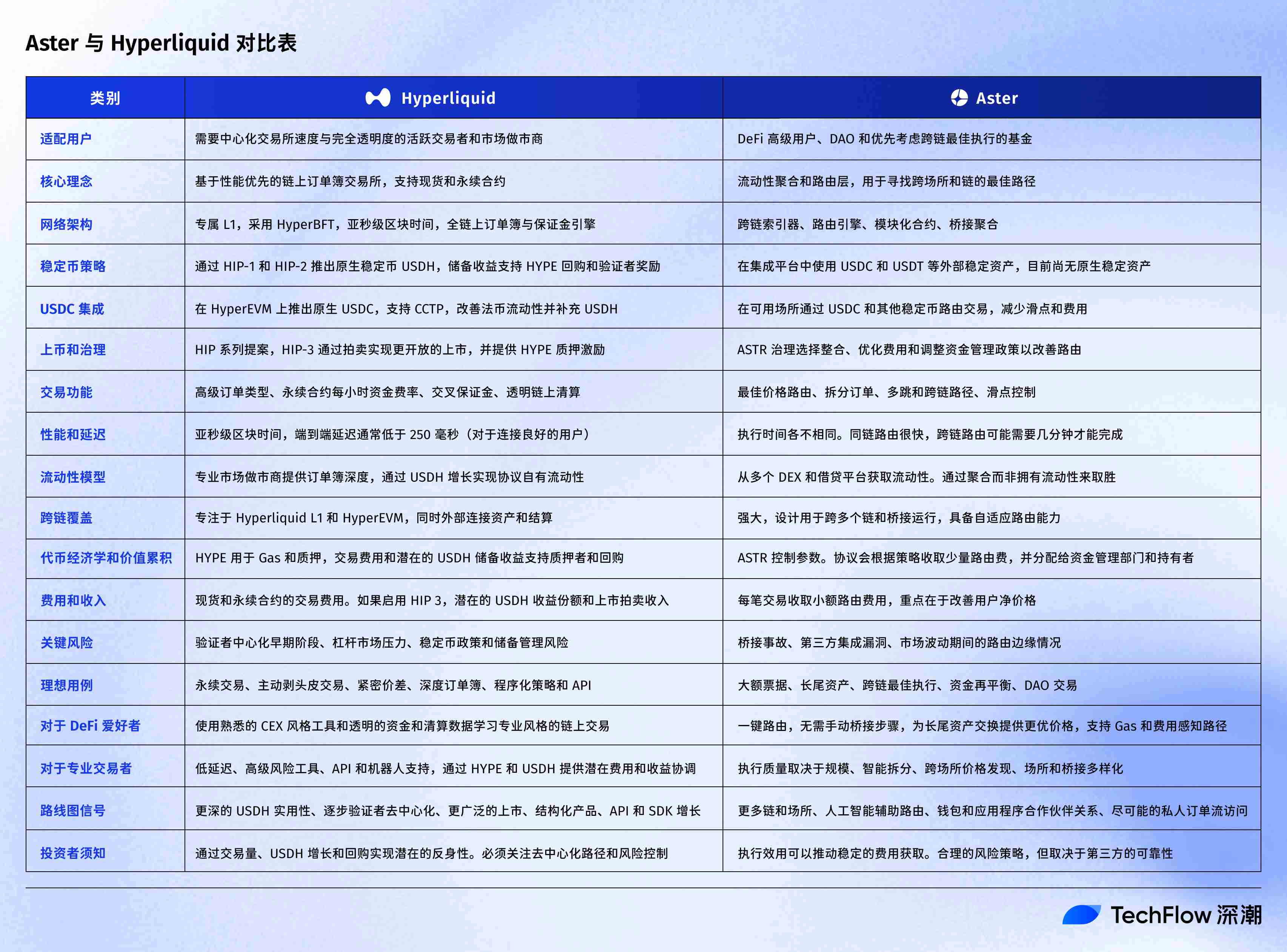 Aster 与 Hyperliquid 对比表