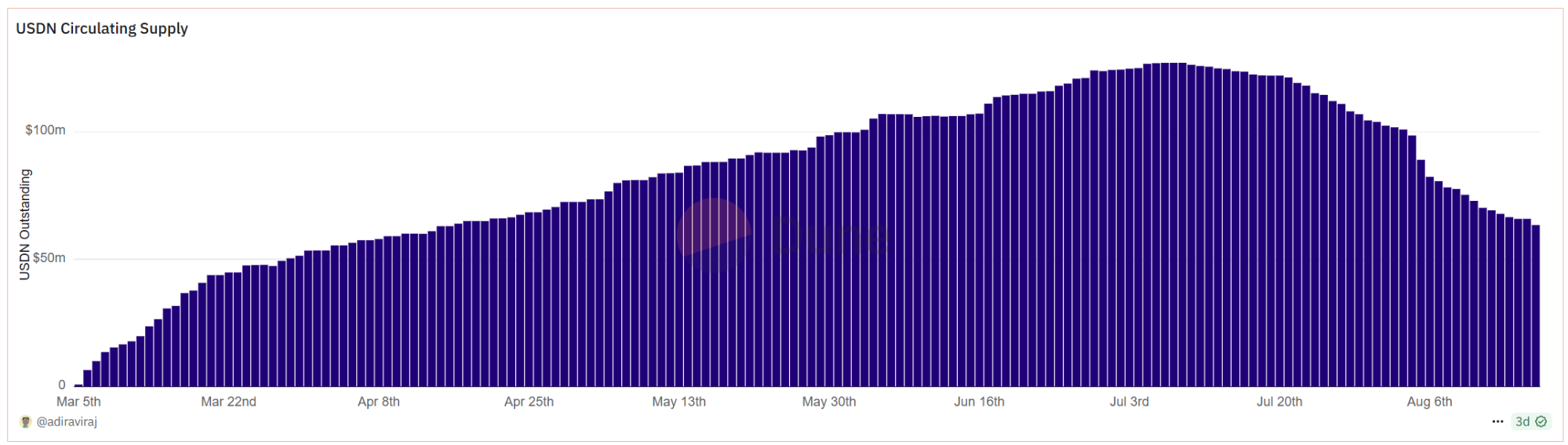 Noble 每日 USDN 流通量约为五千万到一亿美金(数据来源: Dune)