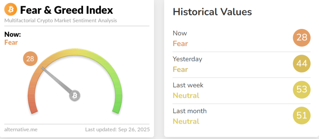 市场不断失守重要关口,无数投资者心心念的的山寨季美梦再度幻灭,牛市美梦也迅速转化为对熊市的担忧。、Alternative 数据显示,目前市场恐慌指数已降至 28,恐慌情绪蔓延。