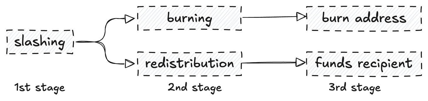 • 重新分配则将价值转移给另一方(不一定是受害方)。 此外,销毁也可能通过协议内置机制独立发生,而无需削减。