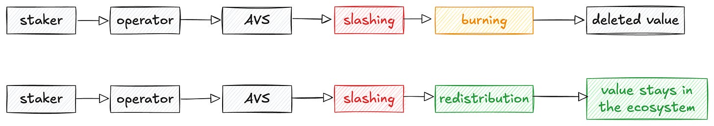 让我们以当今加密货币领域最著名的协议之一——EigenCloud为例。其运营者因未履行义务而被削减,这是件好事:恶意行为者受到惩罚。然而,在引入削减资金重新分配之前,这些资金通常会被销毁(目前仍可销毁)。