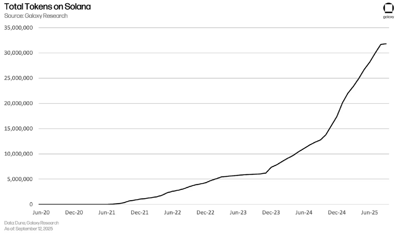 目前 Solana 区块链上的代币数量已超过 3200 万种,而在 2024 年 1 月 Pump.fun 上线前,这一数字还不足 800 万种。