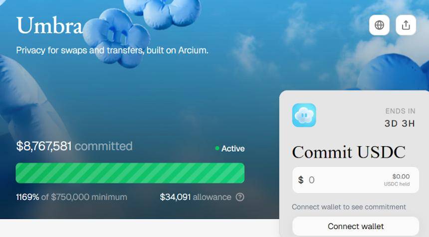 10月6-8日,Solana 隐私协议 Umbra 在MetaDAO的 futarchy 平台上进行ICO,原定筹资$75万,最终获得$880万超募1100%左右。