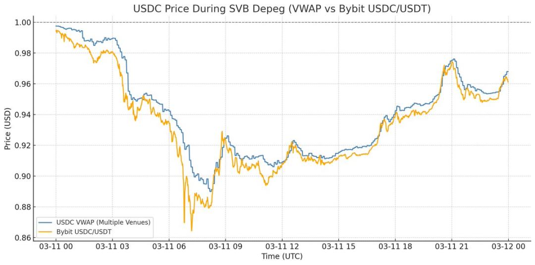 如果你还记得 2023 年硅谷银行危机期间的 USDC,这才是真正的脱锚场景: