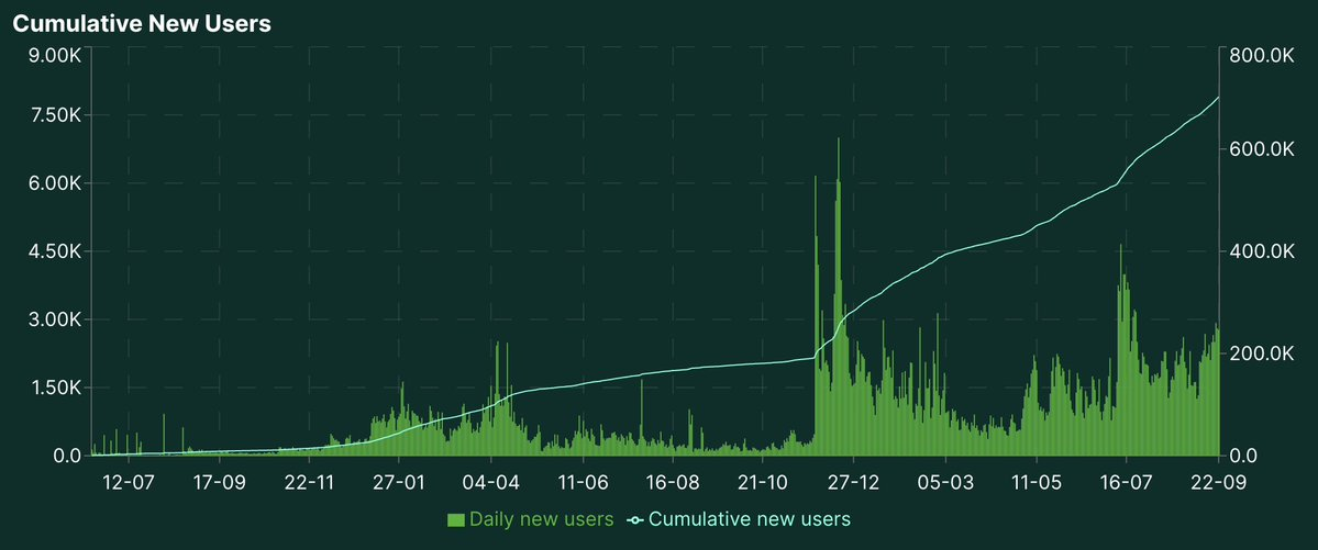 总体而言,自平台成立以来,Hyperliquid 已完成了 2.77 万亿美元的交易量,用户执行了 1650 亿笔交易。