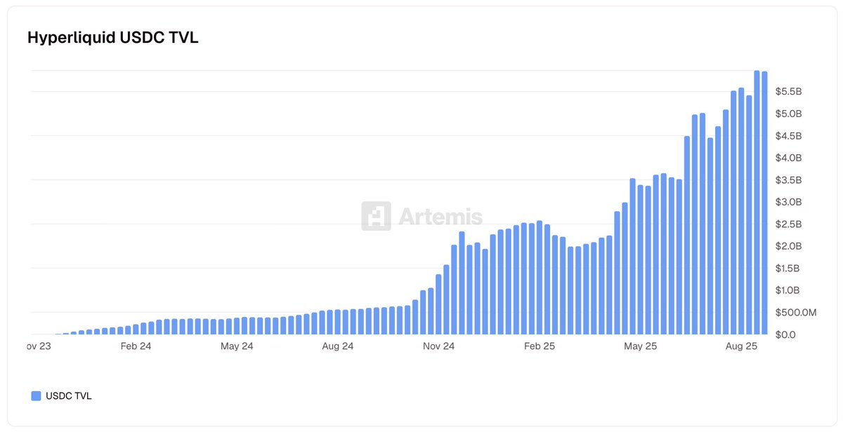 Hyperliquid 2025 年 USDC 增长率 (2025 年 1 月至 9 月)