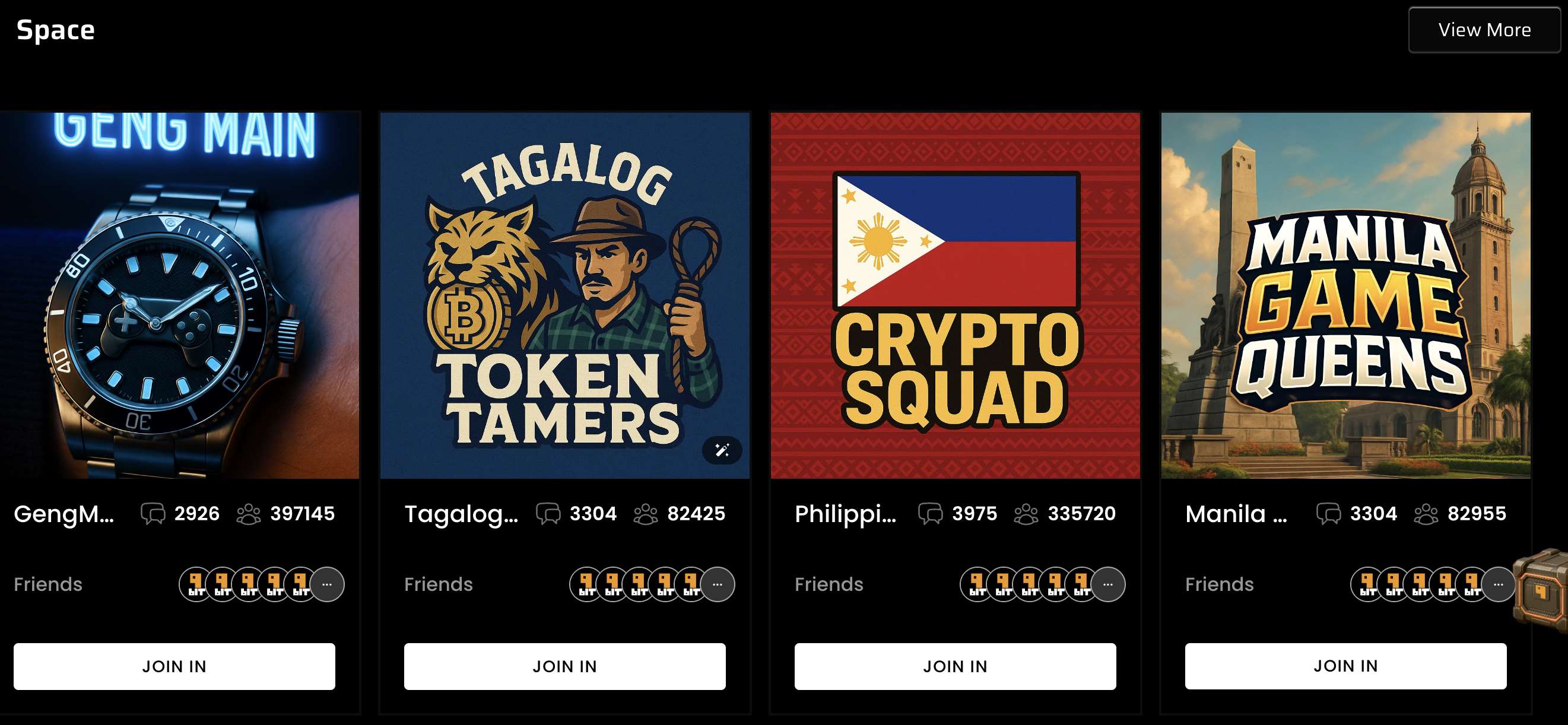 除了游戏,the9bit 在平台上推出了类似 Discord 的社交工具 Spaces 作为发展游戏公会的基础。玩家可以加入 Spaces 并发表或探索包括游戏剪辑、博客、指南等内容,the9bit 会在平台内提供 AIGC 工具进行支持。此外,社区间还将举办电竞赛事来获取奖励。