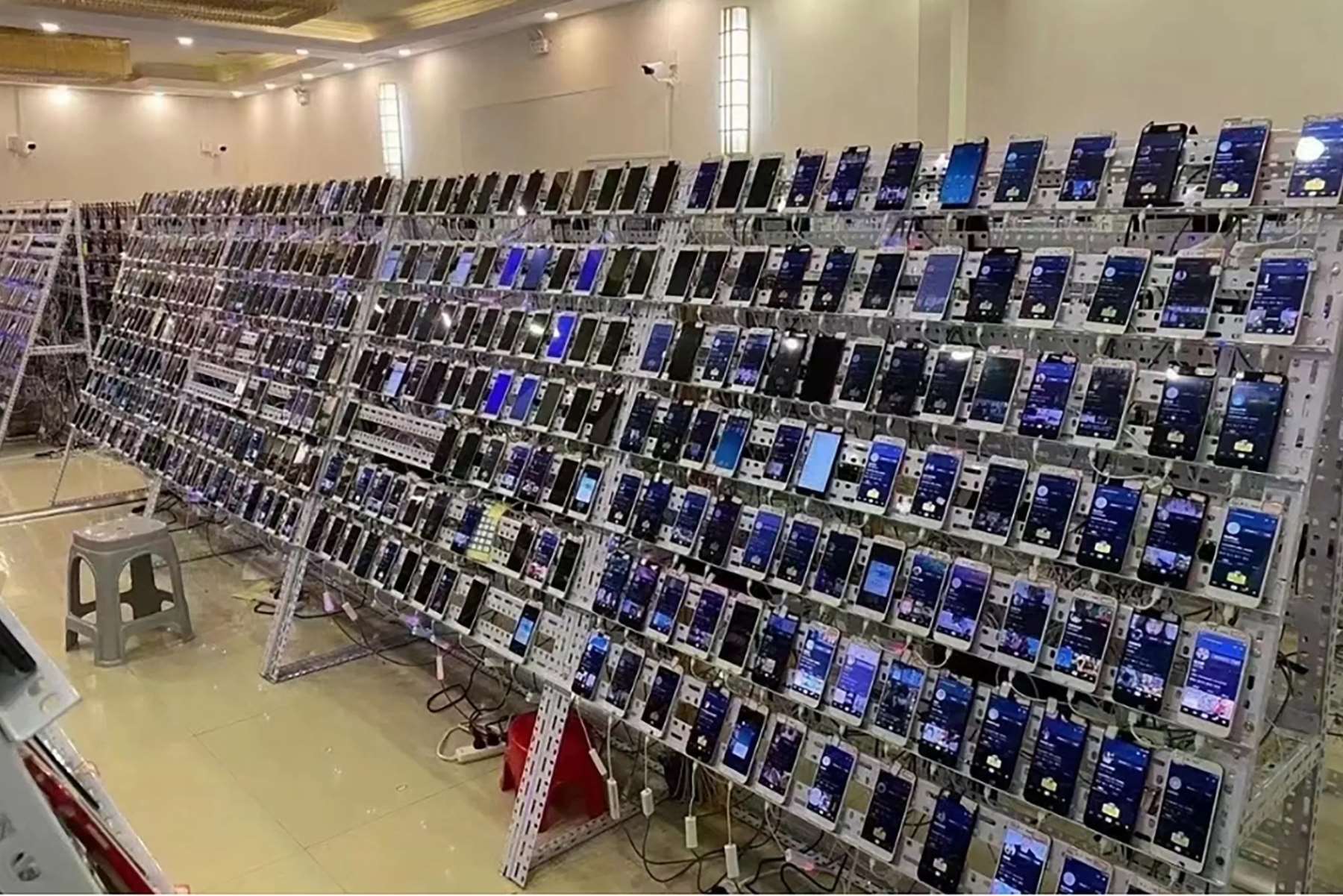 (据美国方面披露,陈志掌控的场所使用 1250 部手机,操控某社交平台上的 7.6 万个账号。来源:美国联邦检察官办公室法庭文件)