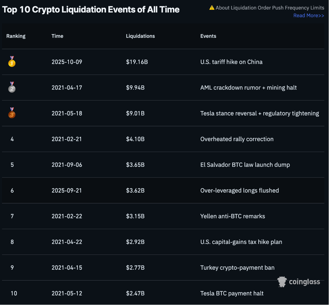 上周五,加密货币市场经历了戏剧性且具有历史意义的抛售,导致有史以来最大单日清算事件。超过 190 亿美元的杠杆仓位在主要中心化交易所被清算,全球逾 160 万名交易者受影响。这场前所未有的连环清算由宏观经济冲击与交易所基础设施的技术脆弱性叠加触发。