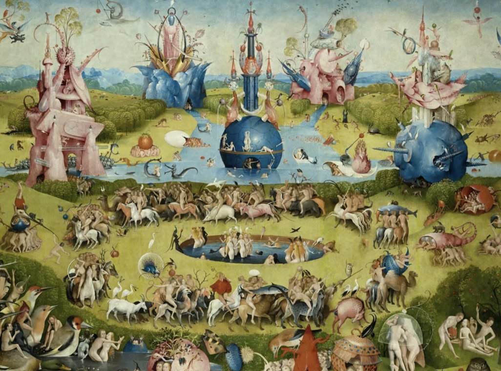 标题:人间乐园,作者希罗尼穆斯·博斯(1490-1510)。这是文艺复兴时期对无限 TAM 的意象:一个充满人类活动的混乱天堂——享乐、贸易、创造、实验。