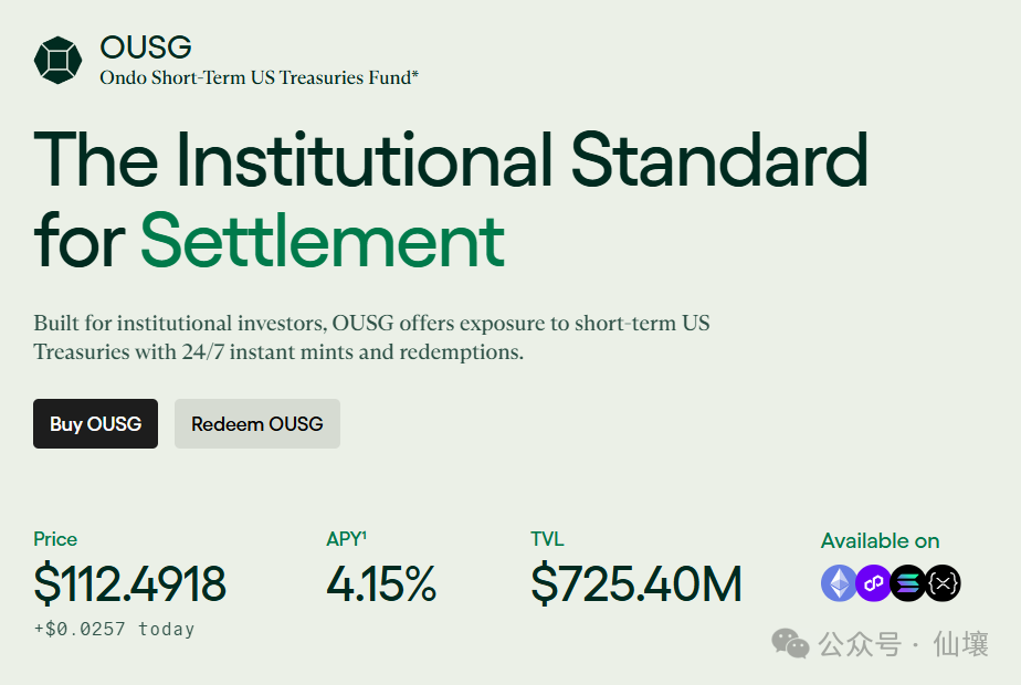 OUSG 的年化收益率通常略低于 USDY,但其稳定性受到机构投资者的青睐。造成二者差异的原因是,USDY 除美国国债外,还投资于一些银行存款票据等,后者通常比国债的风险和收益略高。
