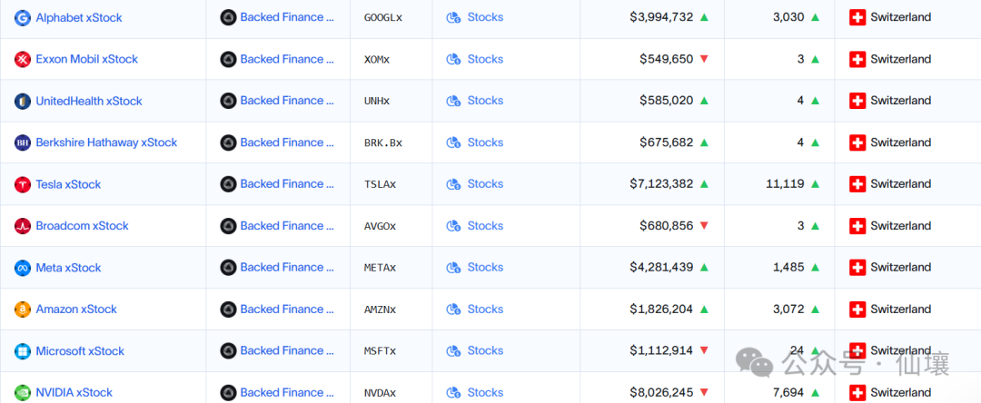 xStocks 是由 Backed Finance 推出的代币化股票产品,几乎占据了 Solana 代币化股票的整个江山。上线一个月,Xstock 链上总交易量就突破 3 亿美元,充分证明了市场对股票代币化的需求。