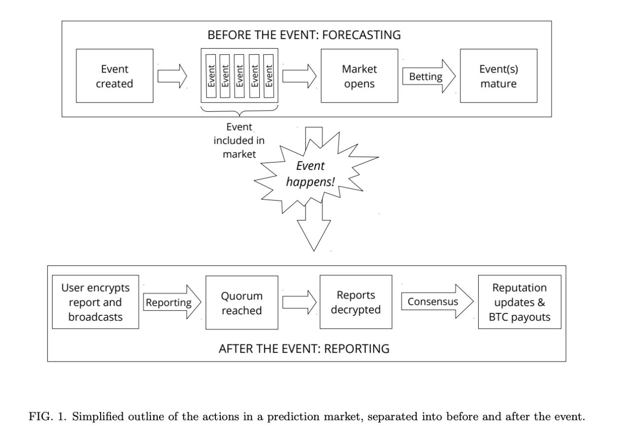 至迟在 2014 年,学术界就已经在思考如何让区块链和预测市场结合,摆脱传统中心化平台的坐庄抽成模式,Vitalik 回忆预测市场初代目 Augur v1 诞生在 2015 年,就是此时思潮的具象化。
