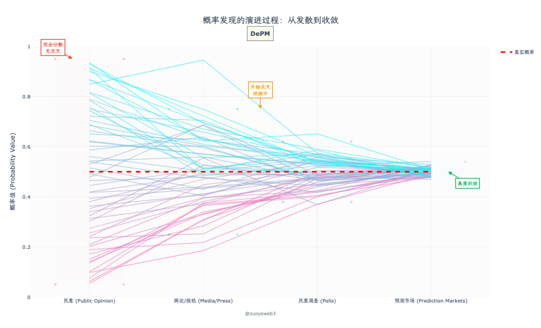 也就是说,Polymarket 是一种“集群算法”,从离散的数据中不断抽样出最大的概率值,并且和最终的结果交叉验证,以提高精确性。