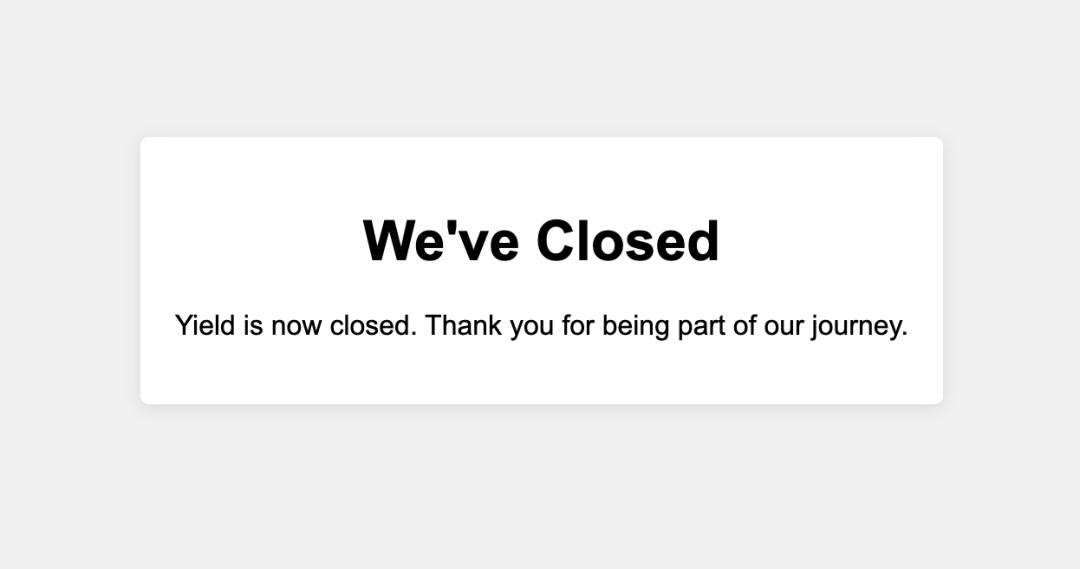 但在 2023 年 10 月,Yield Protocol 官方宣布正式关闭协议,官网随即下线。