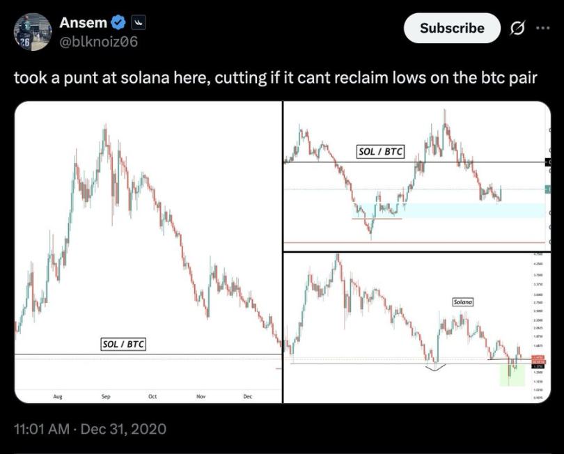 Ansem 并非只是默默地买入 SOL 并希望自己是对的。他不停地谈论它,他推销自己持有的仓位,他公开阐述了他的论点,他承担了在整个人群都看跌时可能出错的社会风险。
