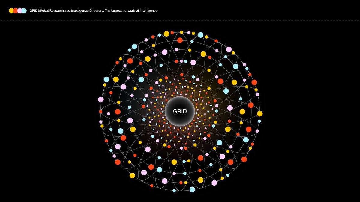 GRID(Global Research and Intelligence Directory,全球研究与智能目录)是迈向开源 AGI 的第一步——一个由全球顶尖构建者贡献的智能体、模型、数据、工具和算力组成的网络,共同协作以实现 AGI 级别的智能成果。