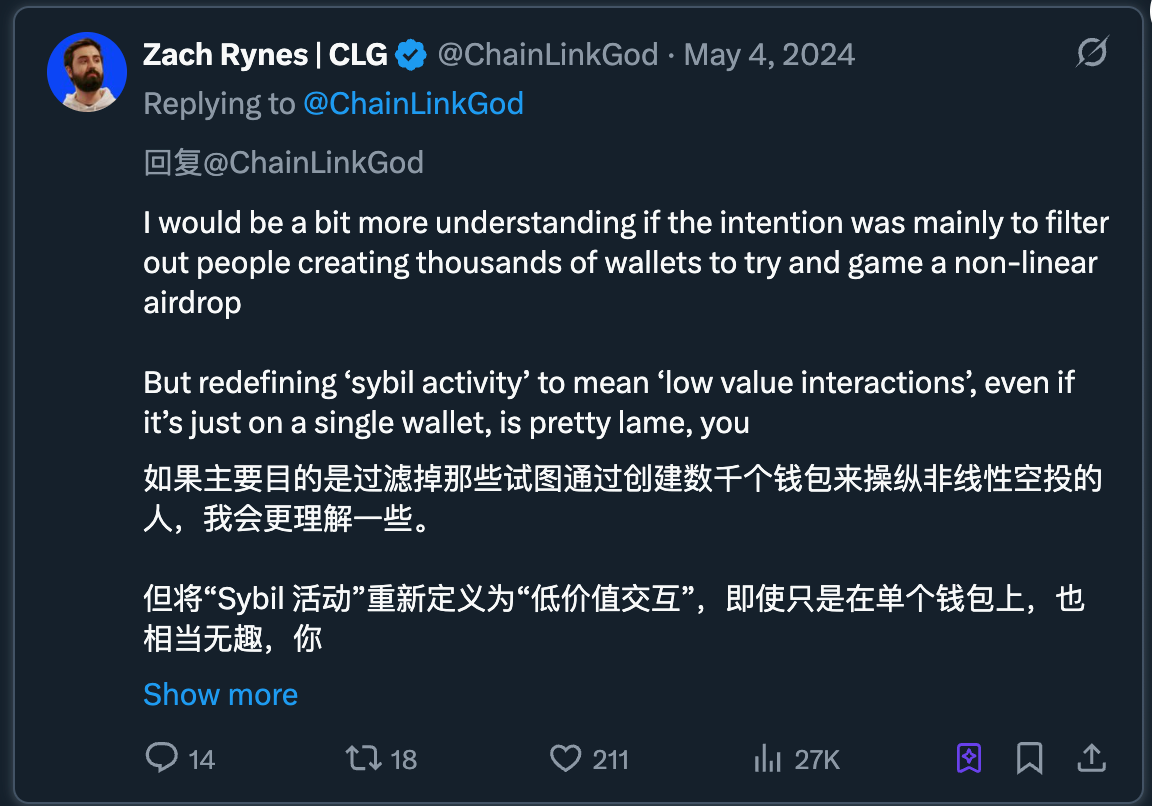 我的原则是:如果 Sybil 风险较高,应专注于一个或少数几个高质量的钱包(具有真实活动),而不是广撒网分散投入。