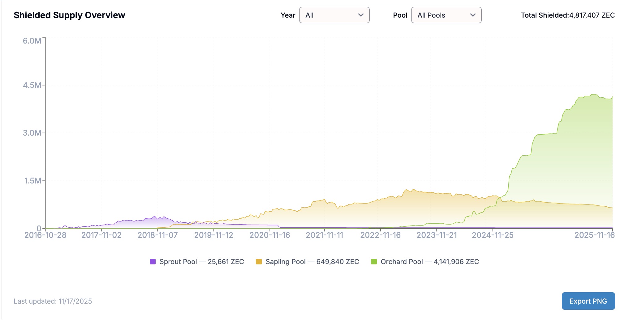 Shielded Zcash 的供应量已接近 30%。来源: Zechub