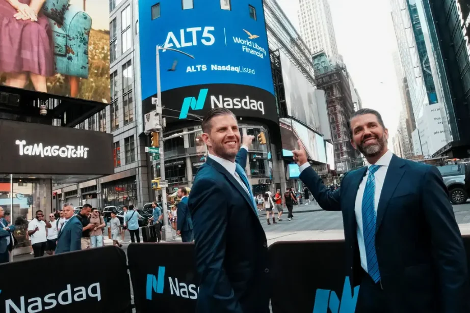 特朗普总统的儿子埃里克和唐纳德指着一项推广活动,该活动包括特朗普家族的加密货币企业 World Liberty Financial