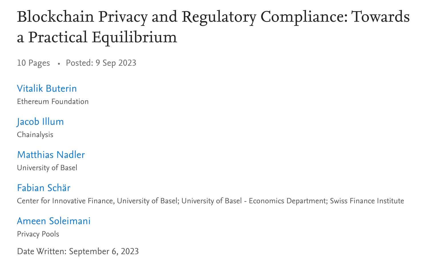 Privacy Pools 又是一个 To VB(Vitalik Buterin)创业项目的典型案例。隐私的话题早在 Zcash 诞生之时就成为了 Web3 行业逃不开的话题,但零知识证明(ZKP)技术的发展和支持合规终于让隐私从纸上谈兵来到了产品化阶段。