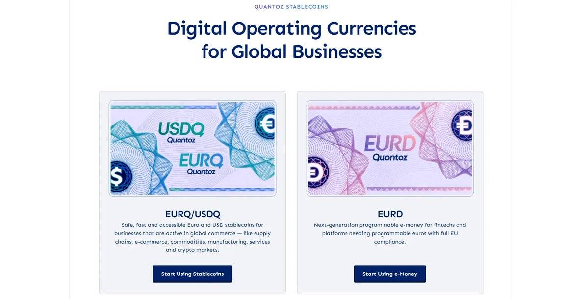 Quantoz 是一家符合 MiCA 要求的稳定币发行商,提供与欧元挂钩的 EURQ 和 EURD,以及与美元挂钩的 USDQ。