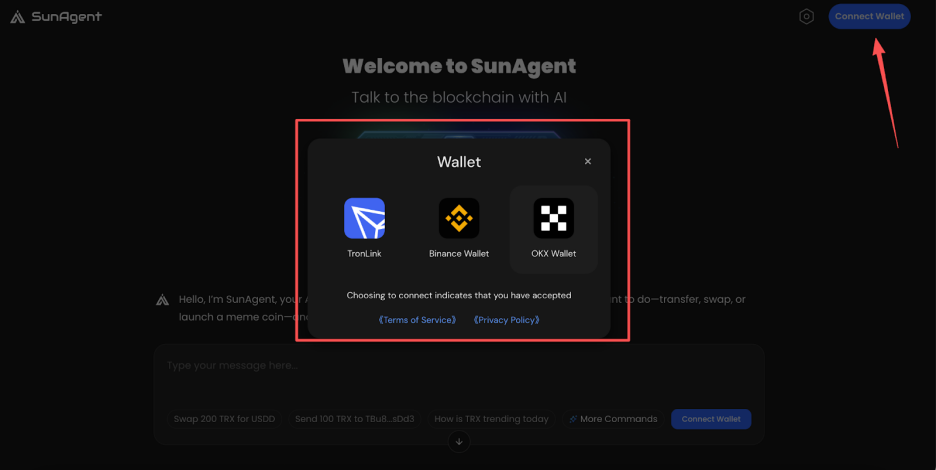 用户只需遵循以下几个简单的步骤,无需任何复杂的学习过程,即可立即驾驭SunAgent,体验用自然对话完成以往繁琐的链上操作,感受前所未有的便捷与高效。