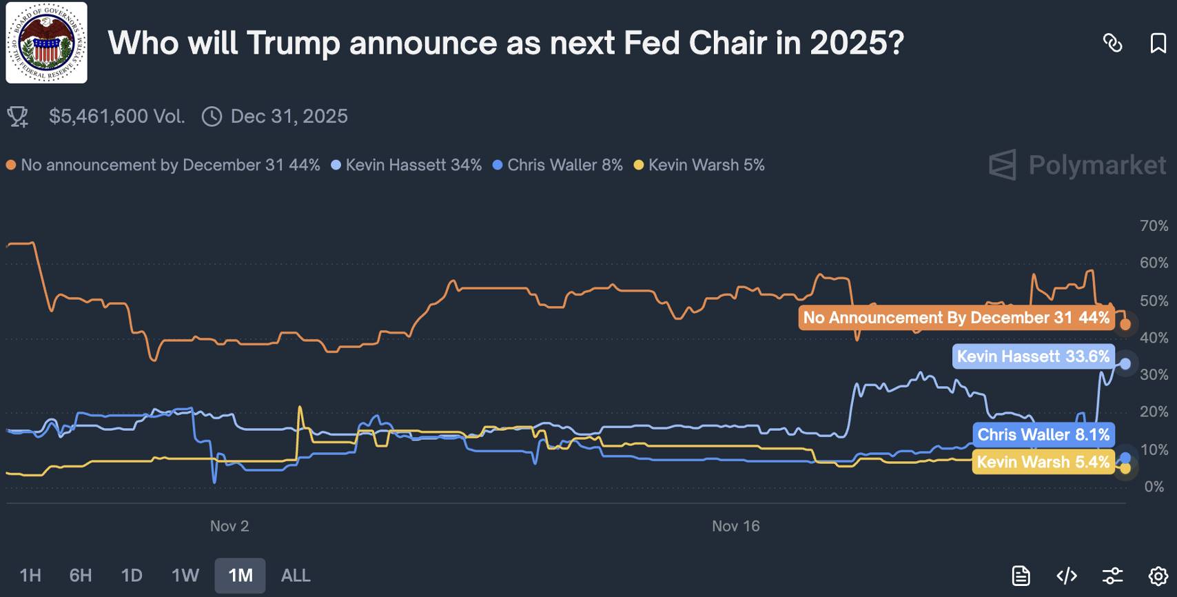 美联储主席更替牵动全球市场:哈塞特领跑或将引爆加密圣诞行情,鹰派沃什上任恐成最大利空