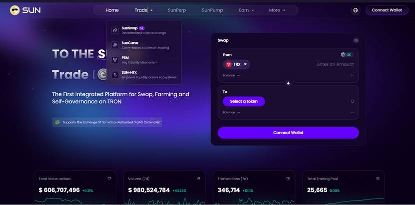 目前,SUN.io通过资产交易DEX平台SunSwap、稳定币交易产品SunCurve和PSM、Meme发行工具SunPump、永续合约平台SunPerp四大核心引擎产品协同发力,共同驱动这一流动性超级枢纽高效运转。