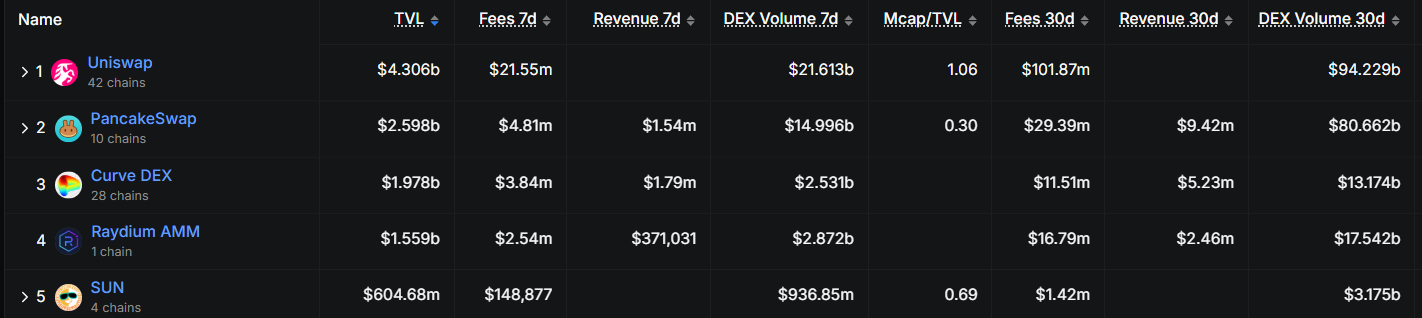 SUN.io持续领跑:TVL稳坐全球DEX前五,产品协同引爆增长新势能