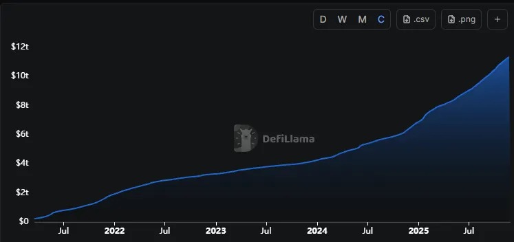过去三年,许多用户将资金从交易所转移出去,这既是出于对再次发生类似 FTX 崩盘的担忧,也是出于意识形态上的坚持。过去三年,去中心化交易所(DEX)的累计交易量增长了两倍多,从 3.2 万亿美元增至 11.4 万亿美元。