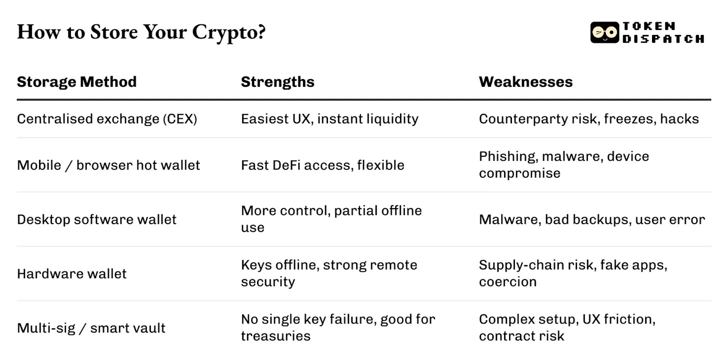 虽然表面上看安全文化有所提升,但风险已从托管式安全措施转移到了用户自行解决问题的混乱局面。电脑上的浏览器扩展程序、保存在手机聊天记录或电子邮件草稿中的助记词以及存放在未加密笔记应用中的私钥,都无法有效抵御潜伏的危险。