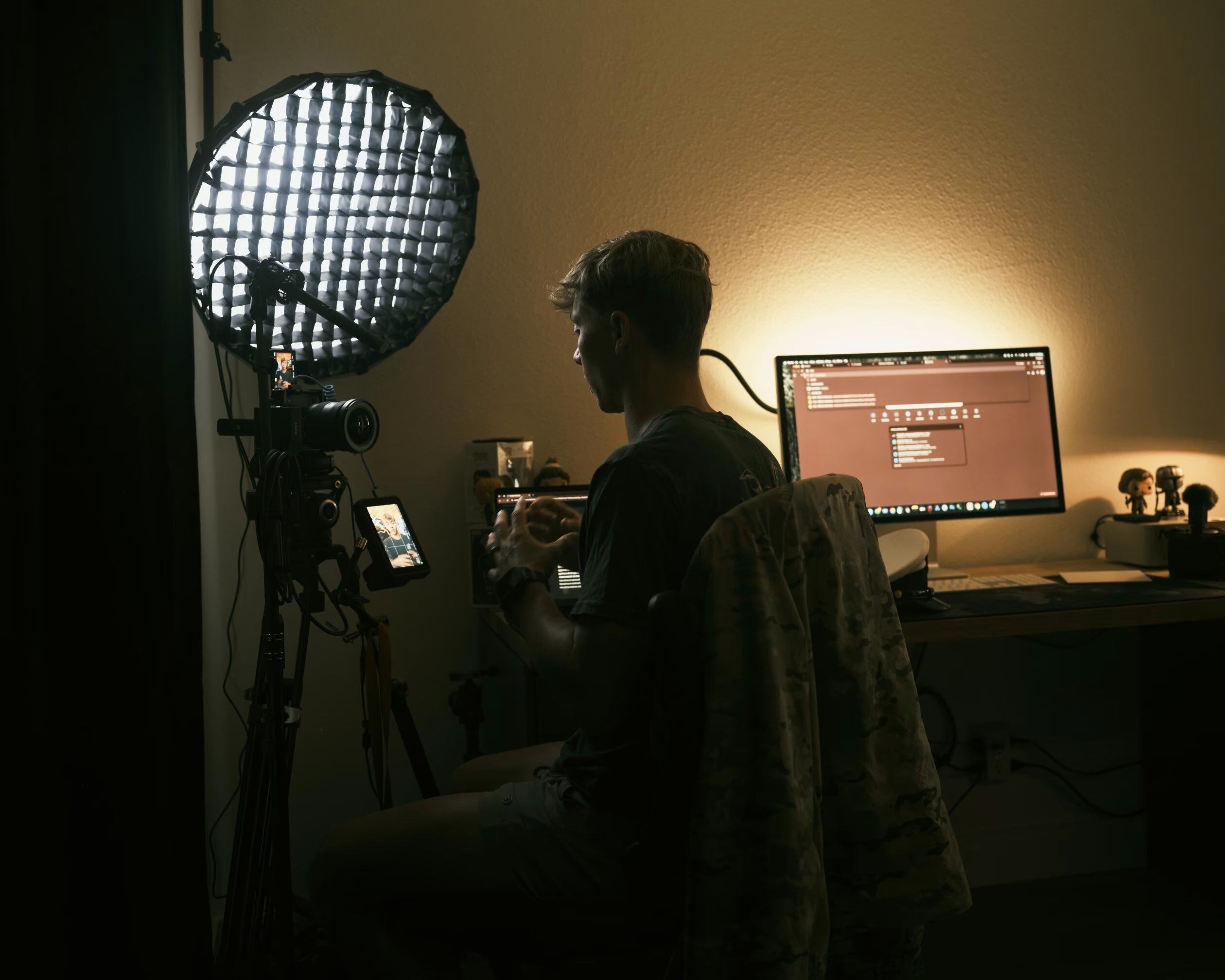 这位海岸警卫队队员会在佛罗里达州圣彼得堡的家中工作室及其周边地点录制投资和理财建议视频。