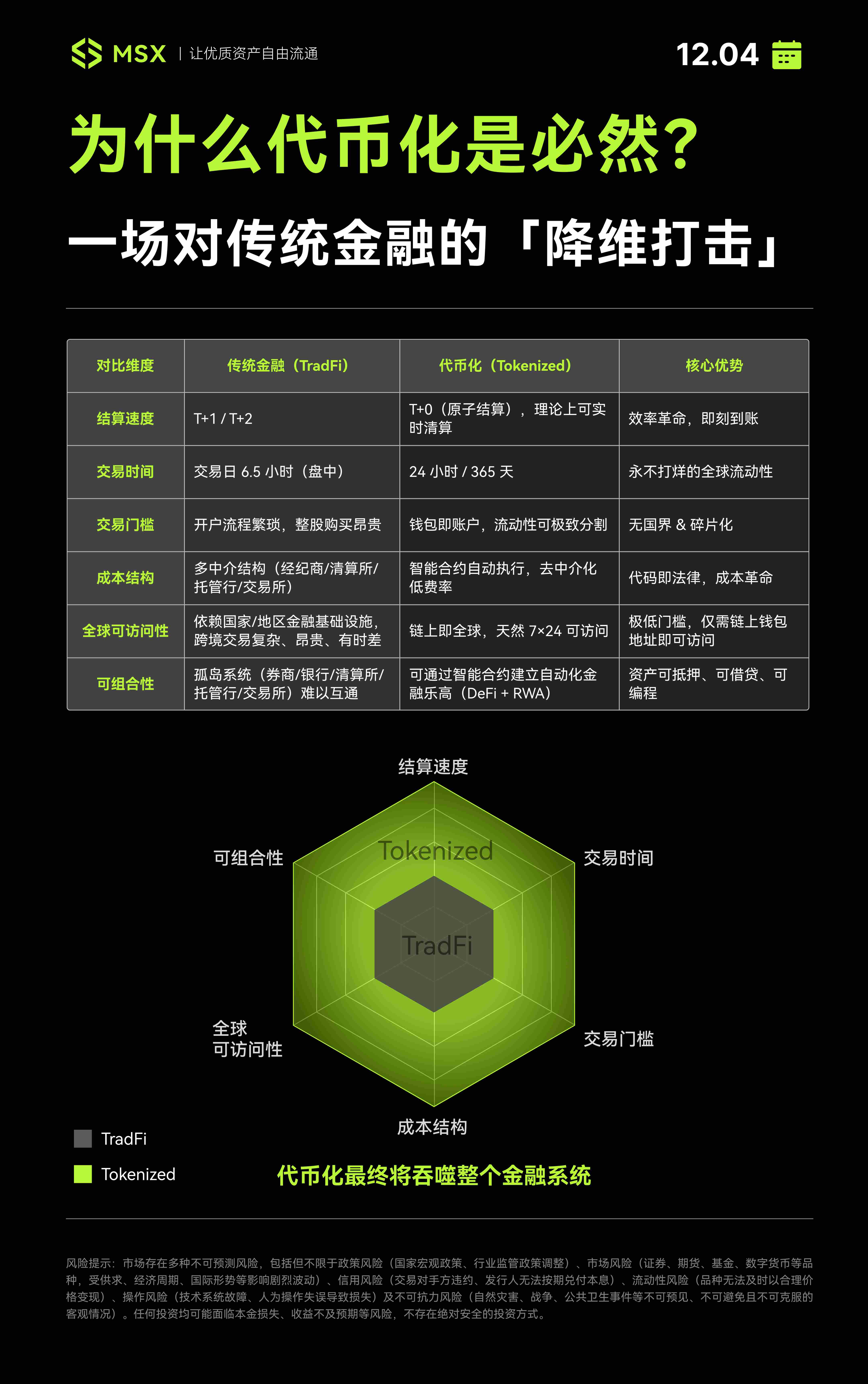 • 结算效率:从 T+1 甚至更久,跨越到 T+0(实时清算),彻底消除对手方风险,据分析这将为全球基础设施每年节省上百亿美元的运营成本;