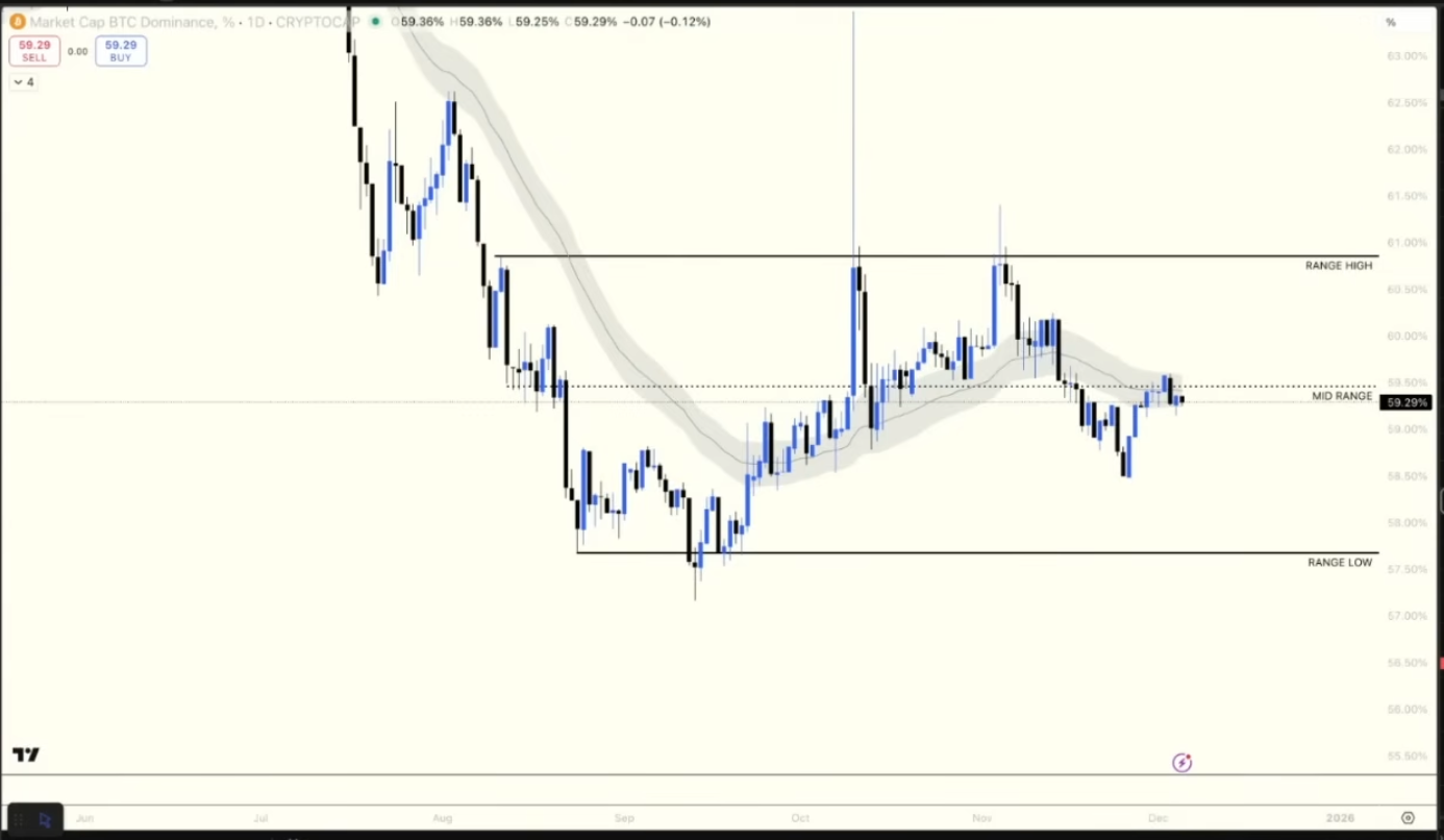 Miles:目前市场上方仍然存在较大的阻力区域,如果我们观察日线图,可以看到价格正在试图突破上方的均线;而在 4 小时图中,成交量可视范围 (VRVP) 的控制点(POC)仍然位于 96,000 附近,这一带形成了明显的阻力区域。