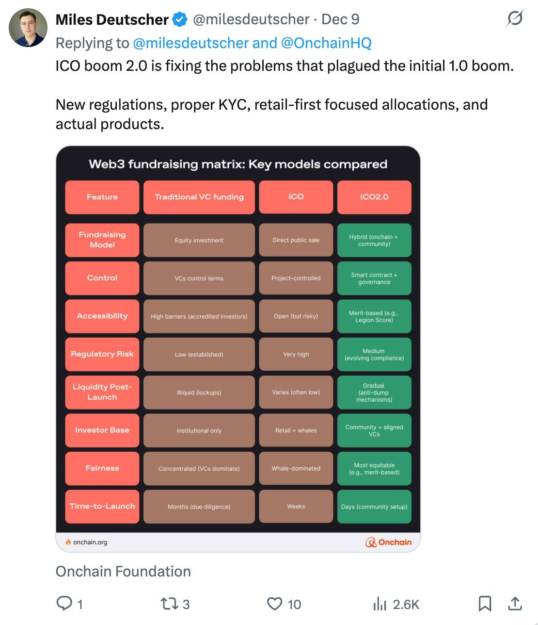 “我们正在从孤立的单次发行,转向协调一致的多平台融资。启动平台与中心化交易所(CEX)将更频繁地合作,市场将分化为两大明确类别: