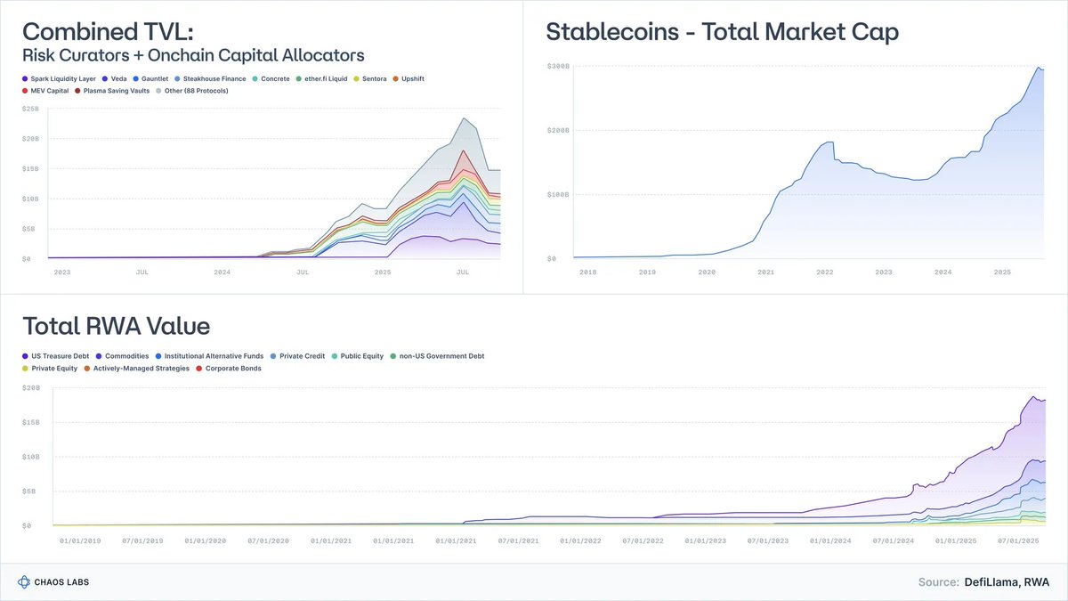 风险管理机构和链上资产分配机构(Risk Curators and Onchain Allocators)这个几年前还几乎无人问津的行业,如今已由近百家公司管理着超过 200 亿美元的资产。