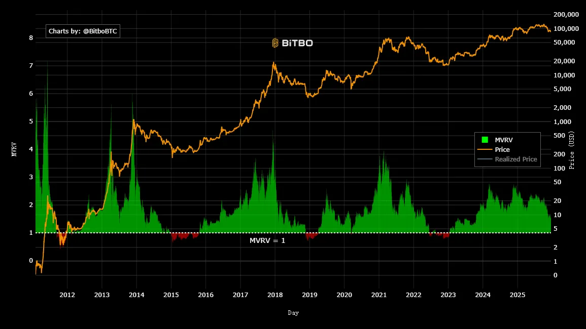 MVRV Z-Score 是链上判断比特币估值是否“偏离其真实价值”的经典指标。