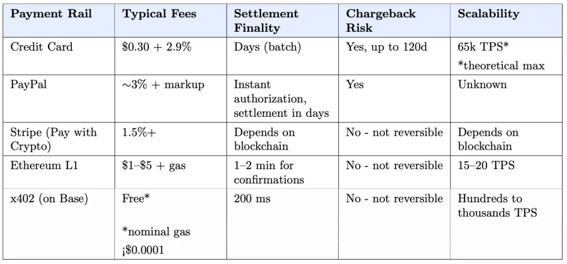 上述所有标准都默认支付会顺利进行且结果符合预期。ACP 和 AP2 在结账环节让人类参与其中,提供了一定安全保障。x402 变体处理的是机器对机器的数据访问,风险通常较低。发卡组织延伸了其熟悉的保护机制,但代价是结算慢、费用高。