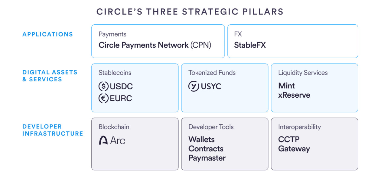 Circle 在 2025 年完成全栈平台构建,结合了可信的数字资产、现实世界的应用以及 Arc 区块链,以此作为互联网的经济操作系统。
