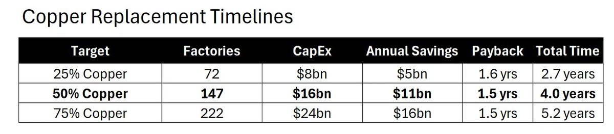 需要至少 4 年才能实现 50% 的铜替代率。