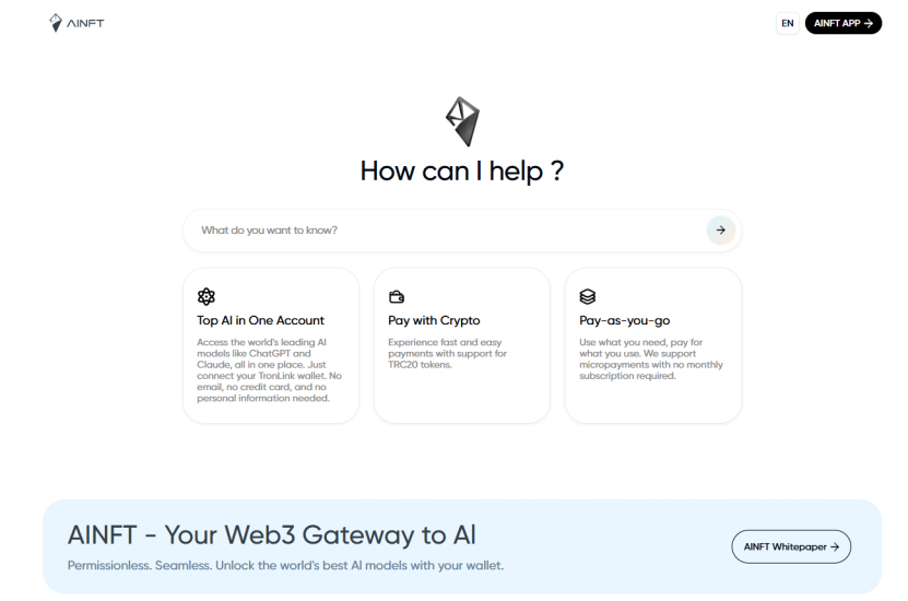 According to the official whitepaper, AINFT’s core mission is to serve as TRON’s AI infrastructure and AI Agent innovation hub—building a “Web3 AI Service Portal” as a one-stop entry point. The currently launched AI large-model aggregation platform represents merely the starting point of its ecosystem strategy; moving forward, AINFT will continue rolling out increasingly diversified AI products to further advance TRON’s intelligent ecosystem development.