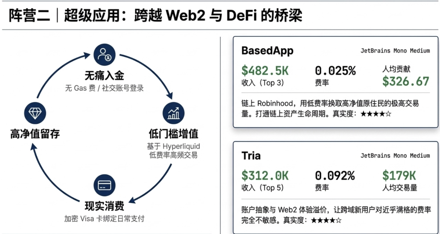 - Super App users (Based, Tria): Moderate user counts, high per-user contribution