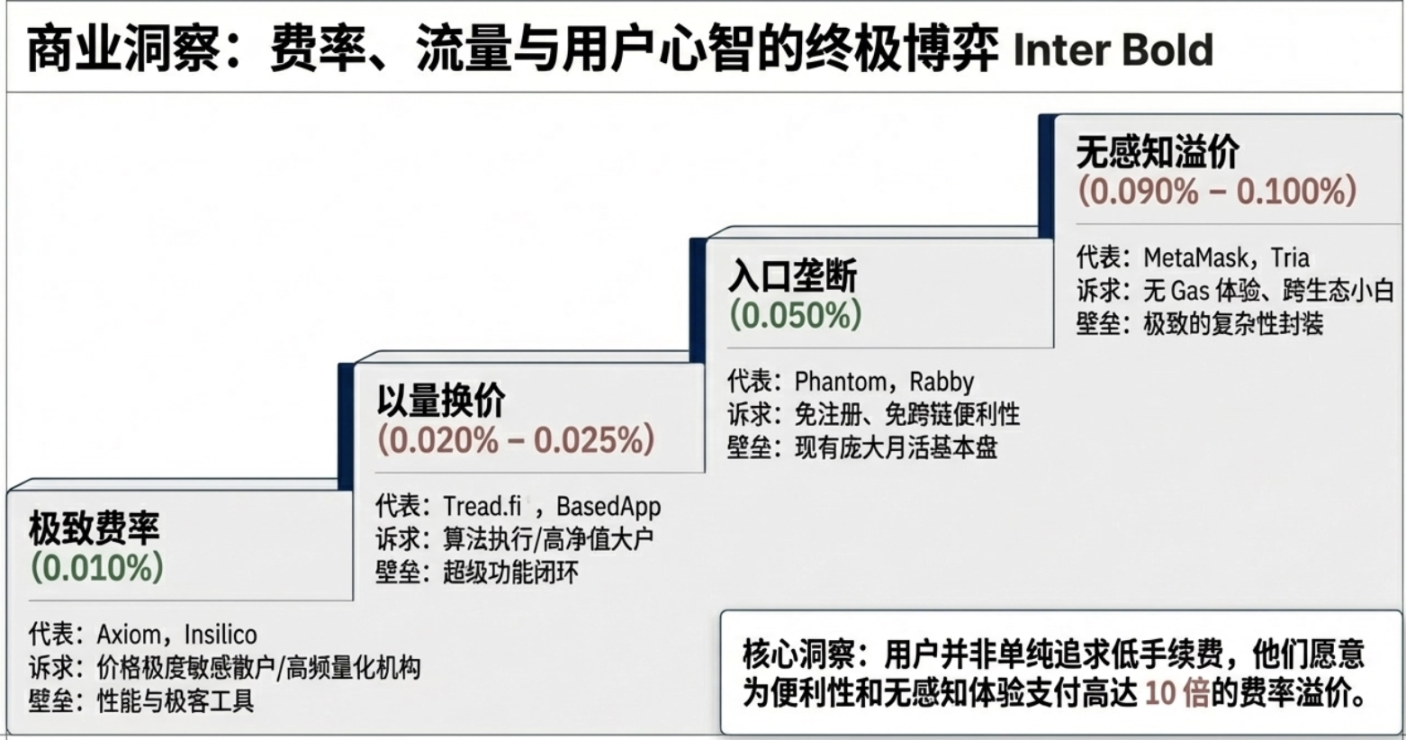 - Wallet platforms (Phantom, Rabby): 0.050% (mid-tier)