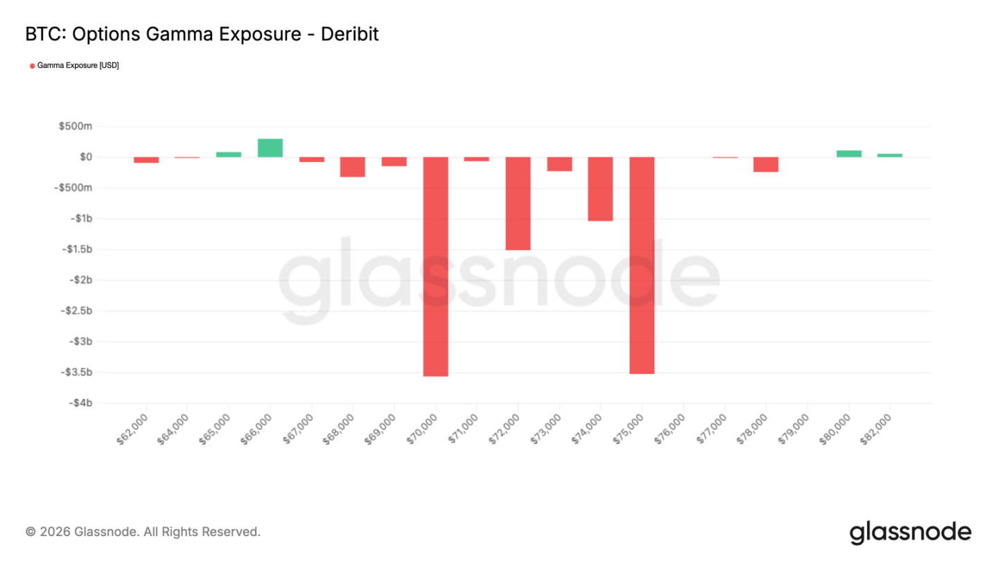 Friday, March 27, marks the simultaneous expiry of weekly, monthly, and quarterly options contracts—a confluence that typically exerts outsized influence on Bitcoin’s price action. As the options market continues to grow, market makers’ hedging activity increasingly impacts short-term price dynamics. With less than 48 hours until expiry, market makers collectively hold short gamma positions—with risk concentrated between $70,000–$75,000. Within this range—and especially in thinner liquidity environments—price may experience accelerated two-way volatility.