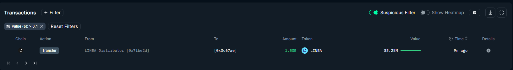 TechFlow News: On February 12, according to onchainschool.pro (@how2onchain), the Linea team’s main wallet transferred $5.3 million worth of LINEA tokens to a new wallet. This transaction occurred approximately 10 minutes ago. Historical records indicate that similar transfers are typically followed by gradual fund movements into exchanges.