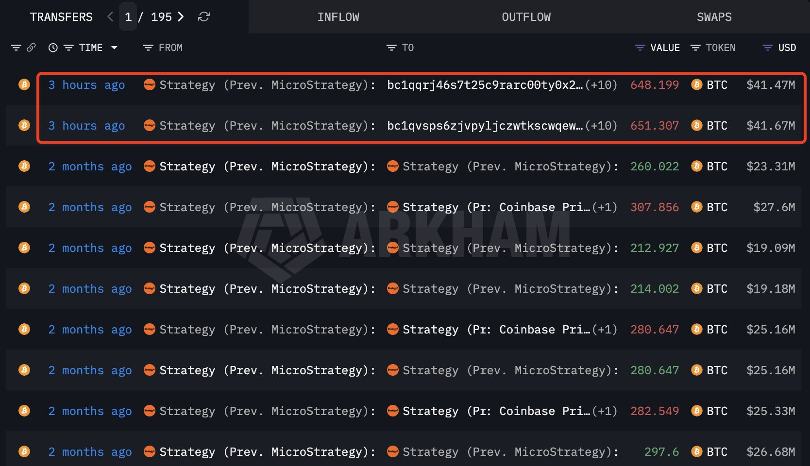 TechFlow reported that on February 25, according to on-chain analytics platform Lookonchain (@lookonchain), Strategy-related wallets—dormant for two months—resumed activity. These wallets transferred 1,300 BTC (approximately $83 million) to a new wallet, likely as part of a fund restructuring operation.