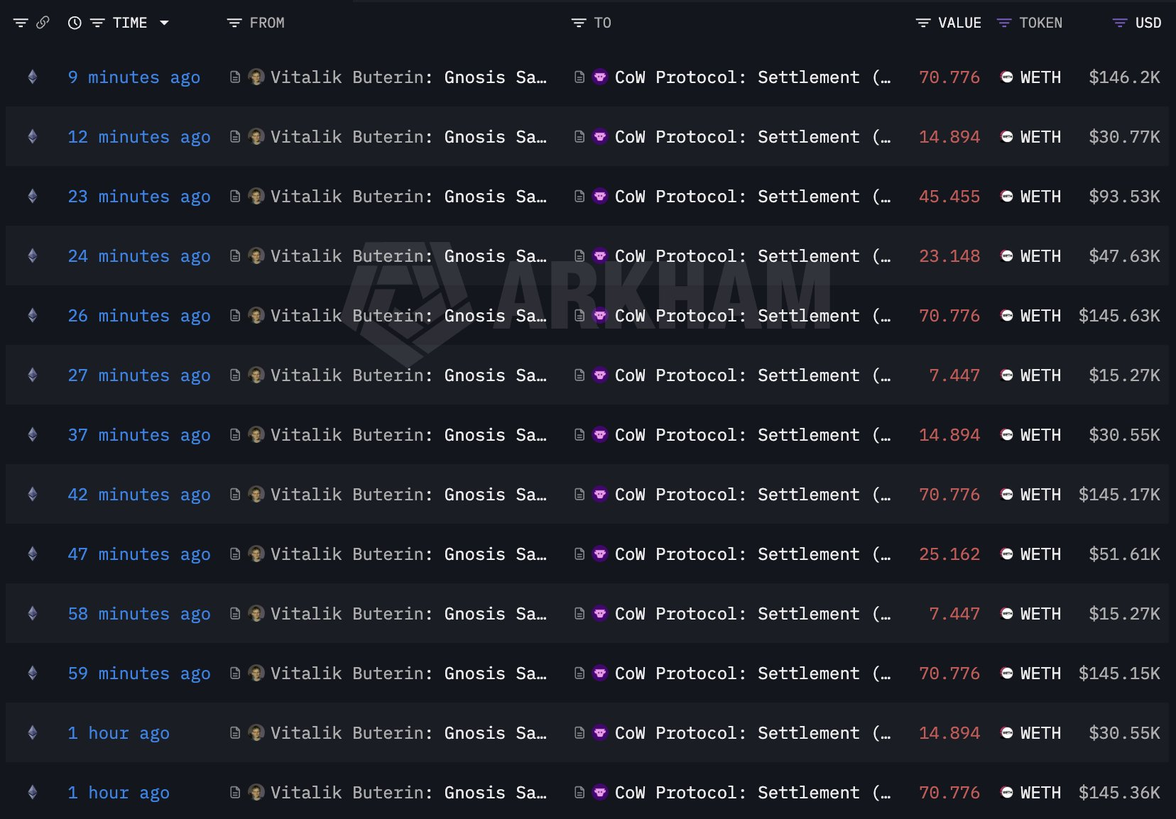 TechFlow News, February 26: According to on-chain analytics platform Lookonchain, Vitalik Buterin (vitalik.eth), co-founder of Ethereum, has continued selling ETH. His total sales have reached 17,196 ETH (approximately $34.96 million), exceeding his previously announced target of 16,384 ETH.